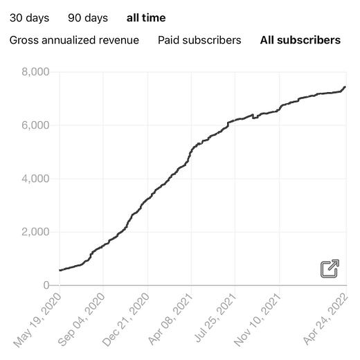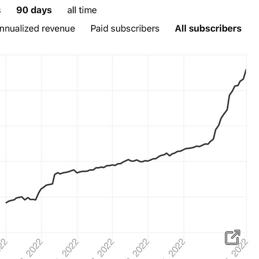 So when do you know you have “made it” on Substack? Maybe above 5,000 free subs as an organic growth threshold. If only Substack data scientists gave us some rules of the game (which would vary by category I imagine).